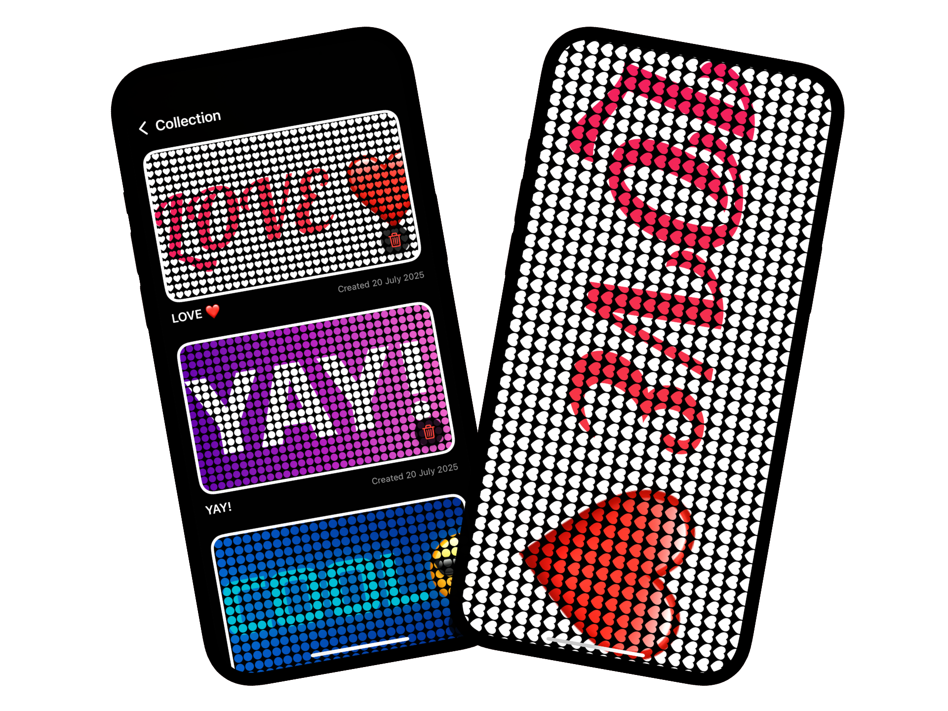 Quickly switch between classic dot matrices, geometric pixels, or playful hearts to match the theme of your announcement or activation.